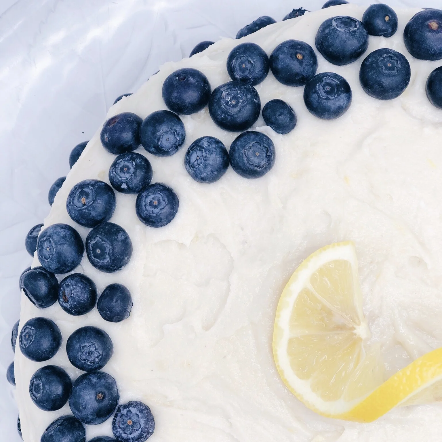 Garnish the cake with lemon peel and additional blueberries. Enjoy!